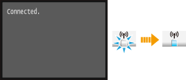 When the setup is completed, the screen below is displayed, and approximately 2 seconds later, the Wi-Fi indicator lights up. Wait approximately 2 minutes (until the automatic settings of IP address and other items are complete).