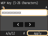 If the wireless connection is set up by selecting a wireless router, the WEP authentication method is set to <Open System> or the WPA/WPA2 encryption method is set to <Auto> (AES-CCMP or TKIP). If you want to select <Shared Key> for WEP authentication or <AES-CCMP> for WPA/WPA2 encryption, you need to set up the connection using the manual entry method ( Setting Up Connection by Specifying Detailed Settings).
