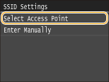 You can search the wireless routers (or access points) available for connection and select one from the display of the machine. For the network key, enter a WEP key or PSK. Before selecting a wireless router, check and write down the required setup information, including the SSID and network key (