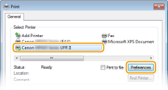 Select the printer driver for this machine, and click [Preferences] or [Properties].
