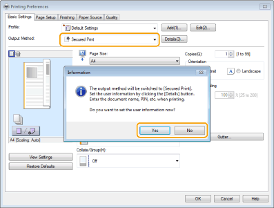 Click [Yes] or [No] on the [Information] pop-up screen.