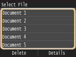 If secured documents from two or more users are being held in memory, the <Select User> screen is displayed prior to the <Select File> screen. Select your user name.