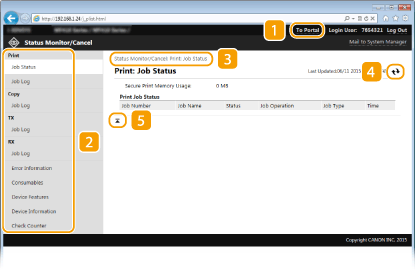 Displays the status of the current print documents and history of print, copy, send, and received documents. You can also check the status of the machine.