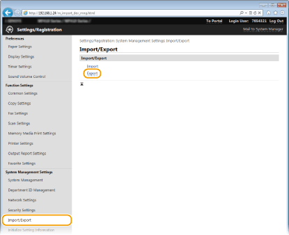 You can export Address Book and machine settings data, and save them on a computer. You can export Address Book data as a device configuration information file (*.dcm) or Canon Address Book file (*.abk). Select the device configuration information file type to save the data as a backup copy or copy the Address Book data to the same machine model. Select the Canon Address Book file type to copy the Address Book data to the fax driver or a different machine model. It is recommended that you regularly back up important settings.