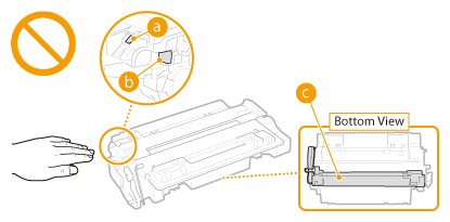Handling the toner cartridgeBe sure to hold the toner cartridge using the handle.