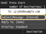 When you specify multiple destinations, the second and following destinations must be ones registered in the Address Book or in an LDAP server. As for Cc and Bcc, you can only specify destinations registered in the Address Book. To use the Address Book or an LDAP server, you must complete the necessary registration procedure in advance.