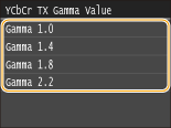 For the gamma value of a monitor display, see the instruction manual included with the display.