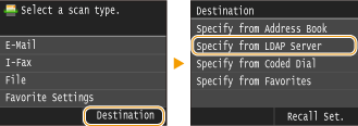 If your office has an LDAP server installed, you can specify a destination using user information in the server. Access the LDAP server via the machine to search for the appropriate user information and specify it as destination.