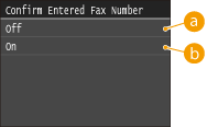 Displays the screen for confirming the fax number.
