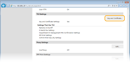 Starting the Remote UI with TLSIf you try to start the Remote UI when TLS is enabled, a security alert may be displayed regarding the security certificate. In this case, check that the correct URL is entered in the address field, and then proceed to display the Remote UI screen. Starting Remote UI
