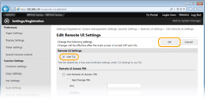 Enabling TLS for e-mailing/I-FaxingIf the SMTP server and the POP3 server support TLS, you can enable TLS for communication with these servers (Configuring E-Mail/I-Fax Communication Settings). For more information about the SMTP server and the POP3 server, contact your Internet service provider or Network Administrator.