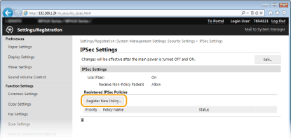 Using the operation panelYou can also enable or disable IPSec communication from <Menu> in the Home screen. Use IPSec