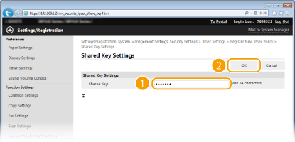 Enter up to 24 alphanumeric characters for the pre-shared key and click [OK].