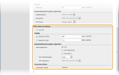 To enable the ESP authentication, select [SHA1] for the hash algorithm. Select [Do Not Use] if you want to disable the ESP authentication.
