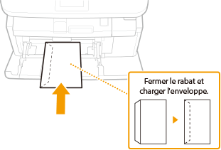 Chargez les enveloppes de manière à ce que le rabat soit vers la gauche de l'appareil comme illustré.