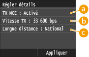 Définition de paramètres détaillés (uniquement s'ils sont enregistrés pour un télécopieur)