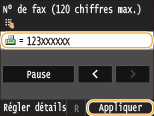 Saisissez le destinataire à l'aide des touches numériques et appuyez sur <Appliquer>.