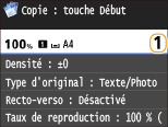 Appuyez sur l'option que vous souhaitez définir. Divers réglages de copie