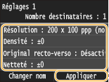 Consultez les détails des paramètres à enregistrer, puis appuyez sur <Appliquer>.