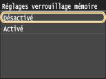 <Menu>  <Réglages fax>  <Réglages fonction RX>  <Réglages verrouillage de la mémoire>  <Désactivé>
