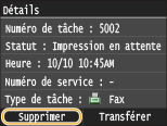 Vous pouvez examiner les informations détaillées des documents conservés en mémoire, notamment le numéro de fax de l'expéditeur et le nombre des pages envoyées ; supprimez ensuite les documents inutiles.