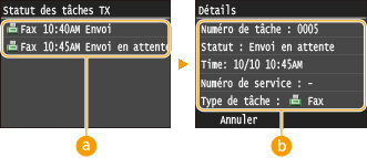 Appuyez sur <Tâche TX> ou <Tâche RX>.