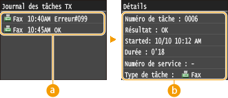 Si <Afficher le journal des tâches> est défini sur <Désactivé>, vous n'êtes pas en mesure d'examiner les journaux de communication. Afficher le journal des tâches