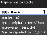 Si l'appareil reçoit un fax ou si une sortie automatique de rapport est définie, les fax et les rapports sont stockés dans la mémoire de façon à éviter d'imprimer des documents peu lisibles. Pour continuer à imprimer alors que le niveau de toner de la cartouche est faible, définissez <Cont. impr. si la quant. d'encre dans la cart. est faible> sur <Activé>. Cont. impr. si la quant. d'encre dans la cart. est faible