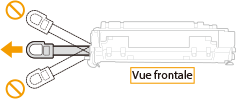 Si la bande adhésive d'obturation reste à l'intérieur des cartouches de toner, la qualité des impressions, y compris celles des fax, en sera diminuée. Notez également que vous ne pourrez pas réimprimer un fax, car la fonction de télécopie supprime automatiquement les données dès qu'elles sont imprimées.