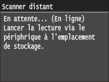 Si aucune numérisation n'est réalisée pendant le délai imparti alors que l'écran ci-dessous s'affiche (l'appareil est en ligne pour la numérisation), l'appareil se déconnecte automatiquement. Vous devez définir le délai précédant la déconnexion de l'appareil, mais vous pouvez également choisir de laisser l'appareil connecté.