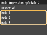 Si le problème persiste malgré la sélection de cette option, définissez <Mode Impression spéciale D> sur <Activé>. Mode Impression spéciale D