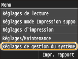 Ce réglage permet de rétablir les valeurs par défaut des réglages de gestion du système. Vous pouvez rétablir simultanément l'ensemble des réglages.