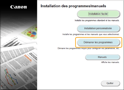 Cliquez sur [Démarrer], pour [Assistant de configuration sans fil Canon MF/LBP].