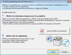 Lancez l'outil de paramétrage de la fonction d'envoi.