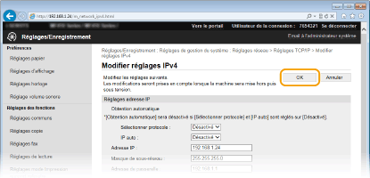 Cliquez sur [Modifier] dans [Réglages IPv4].