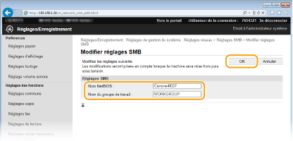 Cliquez sur [Réglages réseau]  [Réglages SMB].