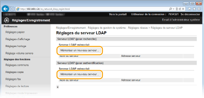 Cliquez sur [Mémoriser un nouveau serveur] pour [Serveur LDAP (pour recherche)] ou [Serveur LDAP (pour authentification)].