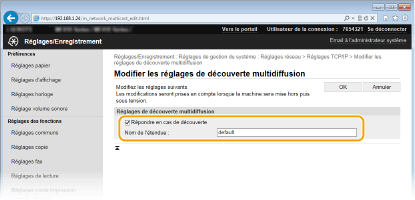 Cliquez sur [Modifier] dans [Réglages de découverte multidiffusion].