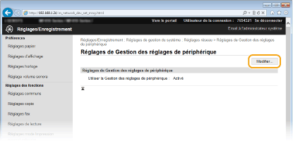Utilisation du panneau de commandeVous pouvez également définir les paramètres de communication avec les plugs-in depuis <Menu>, dans l'écran Accueil. Act/Désact gestion réglages périphérique