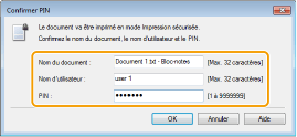 Saisissez le [Nom du document], [Nom d'utilisateur ] et [PIN ] et cliquez sur [OK].