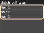 Si les documents sécurisés de deux ou plusieurs utilisateurs sont placés en mémoire, l'écran <Choisir utilisateur> s'affiche avant l'écran <Choisir fichier>. Sélectionnez votre nom d'utilisateur.