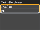 Appuyez sur <JPEG/TIFF> ou <PDF>.