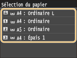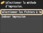 Vous pouvez imprimer des miniatures des fichiers JPEG stockés sur un périphérique mémoire USB. Pour imprimer les images sous forme de miniatures, sélectionnez <Indexer impression> dans l'écran, puis passez à l'étape suivante.