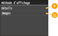 Vous pouvez spécifier <Détails> ou <Images> comme méthode d'affichage par défaut. Réglages d'affichage par défaut
