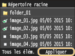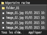 Pour afficher le contenu d'un dossier, sélectionnez un dossier et appuyez. Pour revenir au dossier dans du niveau supérieur, appuyez sur .