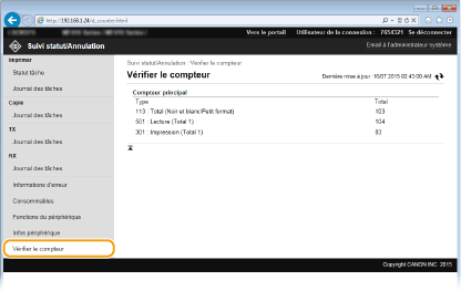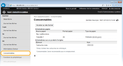 Cliquez sur [Numéro de tâche] pour les documents dont l'impression est suspendue et les documents sécurisés pour afficher leurs informations détaillées. Vous pouvez vérifier le nom de l'utilisateur et le nombre de pages sur le document imprimé.