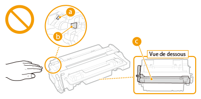 Manipulation de la cartouche de tonerPrenez soin de tenir la cartouche de toner par la poignée.