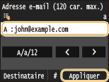 Saisissez le destinataire à l'aide des touches numériques et appuyez sur <Appliquer>.
