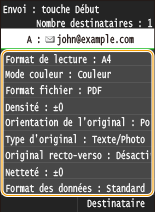 Si vous appuyez sur <Définir via serveur LDAP> ou <Définir moi-même comme destinataire>, le destinataire est sélectionné comme destinataire <A>.