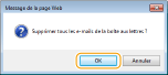 Lorsque vous videz la boîte de messagerie, tous les e-mails de la boîte du serveur sont supprimés. Lorsque vous définissez le compte de messagerie électronique que vous utilisez habituellement, vous devez d'abord vérifier si des messages de la boîte de réception doivent être conservés.